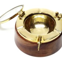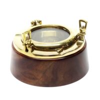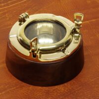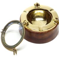 Mal was anderes, ein Aschenbecher in Form eines Bullauges. Dieses dekorative Raucher-Utensil macht was her und erfreut nicht nur Freunde maritimer Accessoires. Der dunkle Holzsockel, kombiniert mit dem gold-glänzenden Messing vom massiven Bullauge ist ein schöner Anblick. Der Clou – Sie können den Ascher mit der Luke des Bullauges verschließen und verhindern somit das gerade im Freien oder an Bord Ihres Boots die Asche durch den Wind umher fliegt.