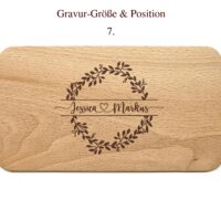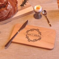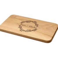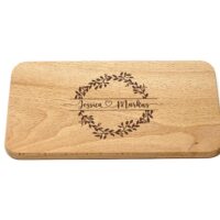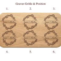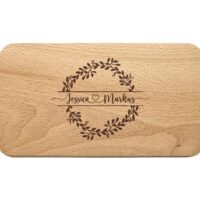 Lassen Sie dieses Schneidebrett mit einer Lasergravur personalisieren, indem Sie zwei Vornamen, verbunden mit einem Herz in einen Blumenkranz eingravieren lassen. Die personalisierte Gravur verleiht dem Brett eine einzigartige Note und macht es zu einem besonderen Geschenk.