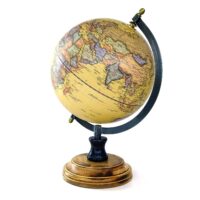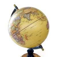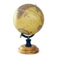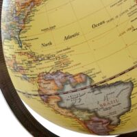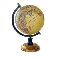 Ein großer Globus im Retro-Look, mit Eisengestell und Holzsockel. Dieser Erdglobus stellt die „Natürliche Welt“ in einer sandfarbenen Optik dar. Er lässt sich selbstverständlich auch drehen. Der Durchmesser der Weltkugel selbst beträgt ca. 20 cm. Der Arm des Gestells zeigt die entsprechende Gradeinteilung.