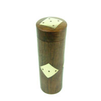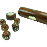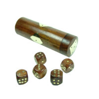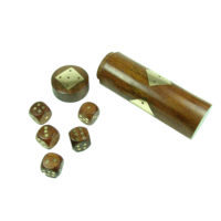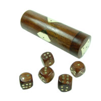Ein kleines Würfelspiel für Zuhause und Unterwegs. Von Hand gefertigte Holzwürfel mit eingelassenen Messing-Augen. Fünf Würfel befinden sich in der dekorativen, maritim gehaltenen Holz-Box. Das dunkle Holz harmoniert perfekt mit den gold-farbenen Messing-Intarsien, welche die Holz-Dose zieren. Der ideale Begleiter auf Reisen oder an Bord.