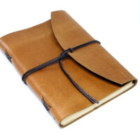 Ein recht dicker Vierkant-Lederriemen bietet Ihnen gleich mehrere Möglichkeiten das Lederbuch einfach zu verschließen.