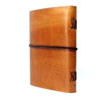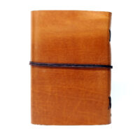 Hochwertiger Bucheinband, vollständig aus echtem, fein genarbten Rindbox Leder (Box OX) von Hand gefertigt. Das vegetabil gegerbte Leder mit Pull-Up Effekt (Kleine Kratzer, lassen sich lassen sich leicht durch reiben beseitigen) ist in einem kräftigen Karamell Farbton gehalten. Das Leder ist in der Haptik angenehm dick und samtig glatt, gleichwohl aber schön genarbt. Die Narbung, kleine Falten oder Besonderheiten im Ledereinband lassen jedes Exemplar zum Unikat werden.