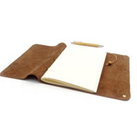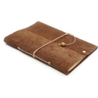 Vickys World DIN A5 Reisetagebuch / Notizbuch in rotbraunem Wildleder. Handarbeit – Made in Germany