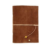 Der rehbraune (Bamby) Bucheinband wurde vollständig aus echtem Rindsleder (Velourleder) gefertigt. Das Leder ist in der Haptik angenehm weich, griffig und füllig. In Kombination mit der Farb- und Formgebung verleiht es dem Buch einen sehr lässigen und schlichten Charakter.