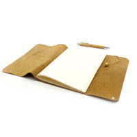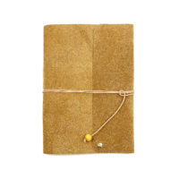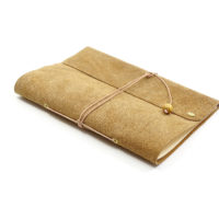 Der hellbraune (Caramel) Bucheinband wurde vollständig aus echtem Rindsleder (Velourleder) gefertigt. Das Leder ist in der Haptik angenehm weich, griffig und füllig. In Kombination mit der Farb- und Formgebung verleiht es dem Buch einen sehr lässigen und schlichten Charakter.