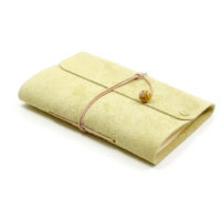 Der beigefarbene (Nature) Bucheinband wurde vollständig aus echtem Rindsleder (Velourleder) gefertigt. Das Leder ist in der Haptik angenehm weich, griffig und füllig. In Kombination mit der Farb- und Formgebung verleiht es dem Buch einen sehr lässigen und schlichten Charakter.