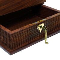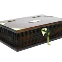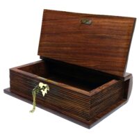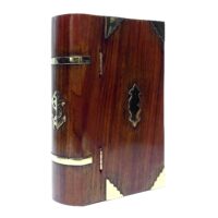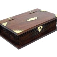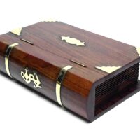 Ein sehr schönes Stück Handarbeit aus Holz mit Messingbeschlägen. Eine abschließbare Box in Form eines Buchs bietet einiges an Raum für persönliche Dinge, die man lieber ein wenig geschützt und verborgen aufbewahren möchte.
