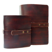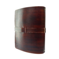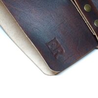Der Ledereinband im Farbton Ebony Raw hat generell eine ungleichmäßige, leicht streifige und diffuse Farbgebung. Hierdurch entsteht ein interessantes Wechselspiel aus Dunkelbraun bis fast Schwarz. Das Leder ist robust und dick, aber dennoch griffig und glatt. Die Kanten und Innenseite werden nicht gefärbt und mit Kupferbürsten bearbeitet, so dass eine Wildleder Haptik & Optik entsteht.