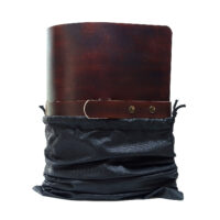 Ein Lederband mit doppeltem Druckknopf-System ermöglicht einen sicheren Verschluss und ist zugleich variabel bei der Füllmenge.