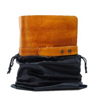 Ein Lederband mit doppeltem Druckknopf-System ermöglicht einen sicheren Verschluss und ist zugleich variabel bei der Füllmenge.