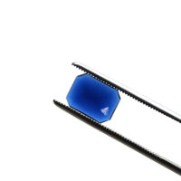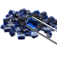 Facettierter Cabochon Schmuckstein aus saphirblauem Glas in achteckiger Form.
