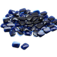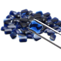 Facettierter Cabochon Schmuckstein aus saphirblauem Glas in achteckiger Form. Perfekt zur Anfertigung von Modeschmuck, Accessoires und stilvollen Veredelungen. Entgegen einem natürlichen, echten Saphir Edelstein, sind die Farb-Eigenschaften, sowie die Lichtdurchlässigkeit, bei einem Glas Schmuckstein nahezu immer identisch. Die Abmessung beträgt ca. 12 x 16 mm, bei einer durchschnittlichen Dicke von ca. 4 mm und einem Gewicht von ca. 1,1 – 1,2 Gramm, welches bei einem natürlichen Pendant ca. 5,8 – 6,0 Carat entsprechen würde.