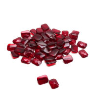 Facettierter Cabochon Schmuckstein aus rubinrotem Glas in achteckiger Form.
