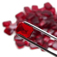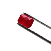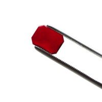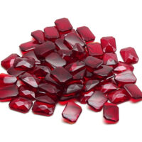 Facettierter Cabochon Schmuckstein aus rubinrotem Glas in achteckiger Form. Perfekt zur Anfertigung von Modeschmuck, Accessoires und stilvollen Veredelungen. Entgegen einem natürlichen, echten Rubin Edelstein, sind die Farb-Eigenschaften, sowie die Lichtdurchlässigkeit, bei einem Glas Schmuckstein nahezu immer identisch. Die Abmessung beträgt ca. 12 x 16 mm, bei einer durchschnittlichen Dicke von ca. 4 mm und einem Gewicht von ca. 1,1 – 1,2 Gramm, welches bei einem natürlichen Pendant ca. 5,8 – 6,0 Carat entsprechen würde.