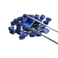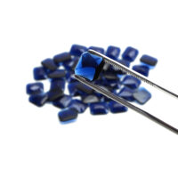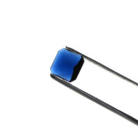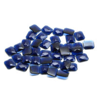 Facettierter Cabochon Schmuckstein aus saphirblauem Glas in achteckiger Form.