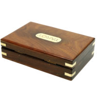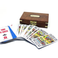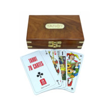 Tarot Karten in einer maritimen Holz-Box. Die Box, von Hand gefertigt und mit Messing-Intarsien verziert, beinhaltet 78 Spielkarten. Ein Messingschild mit der Aufschrift Tarot ist in den Deckel der Box eingelassen. Lassen Sie sich die Karten legen oder legen Sie diese selbst für Freunde in geselliger Runde. Eine unterhaltsame Abwechslung im Gegensatz zu normalen Kartenspielen.