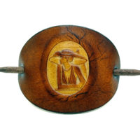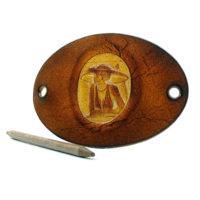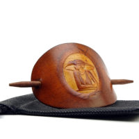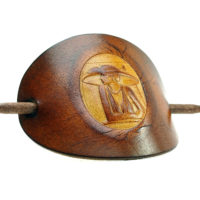 Ausgefallene Haarspange bzw. Haarklammer, in der Farbe Antique aus handgefärbten, derben Rindsleder mit einem Holzstab. Die eindrucksvolle Prägung in Form einer Gemme bzw. Kamee (Cameo) zeigt den Kopf einer Frau, wir nennen sie Jessica, welche von der Biedermeierzeit (1815-1848) bis in die 1920 Jahre gelebt haben könnte. Diese Cameo Serie beinhaltet weitere 14 unterschiedliche Darstellungen von Frauen aus der Zeit des Biedermeiers bis zu den goldenen Zwanzigern.