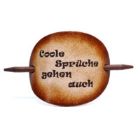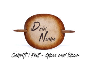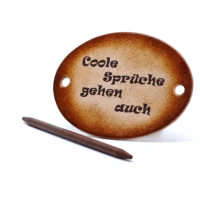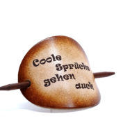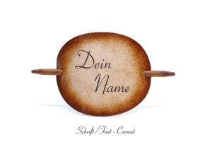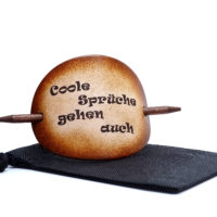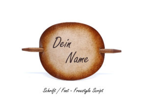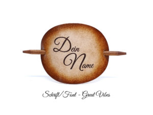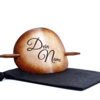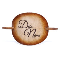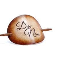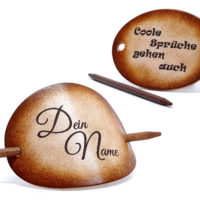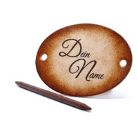 Ausgefallene Haarspange bzw. Haarklammer, in der Farbe Antique aus handgefärbten, derben Rindsleder und einem Holzstab. Diese einzigartige Haarspange kann mit Ihrem Namen, einem Text oder einem Spruch personalisiert werden. Einfach die gewünschte Schrift auswählen und den Text angeben.