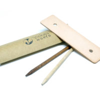 Schlichte, hell-beige Haarspange aus vegetabil gegerbten Rindsleder. Es handelt sich hierbei um ein recht ständiges Rindsleder mit einer Dicke von bis zu 2,5 mm. Ein naturfarbener Holzstab (Buche) aus FSC-zertifiziertem Anbau sorgt für einen perfekten Halt. Zusätzlich liegt ein im Antik-Look gebeizter Holzstab bei, der als kontrastgebendes Element für Abwechslung sorgt. Alles verpackt in einer reizvollen Kissenbox aus recyceltem Craft-Karton.