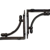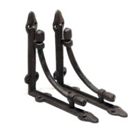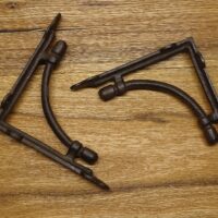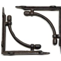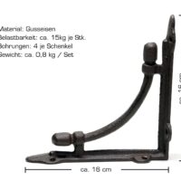Vintage Regalstützen aus Gusseisen in einem dunkelbraunem Farbton. Die Regalträger können sowohl Indoor wie Outdoor verwendet werden. Der Antik-Look hebt sich deutlich von der üblichen Baumarktware ab. In Kombination mit Echtholz-Regalbrettern, bestenfalls welche mit original Baumkante erzeugen diese Regalhalter eine gemütliche Landhaus-Atmosphäre, die an längst vergangene Zeiten erinnert.